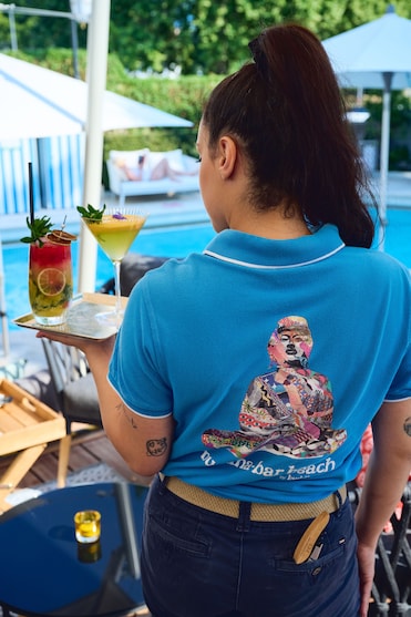 La zona de la piscina exterior de temporada de este hotel desprende un encanto exclusivo, con elegantes sombrillas para una sombra perfecta. El lujo se une a la relajación en este oasis acuático.