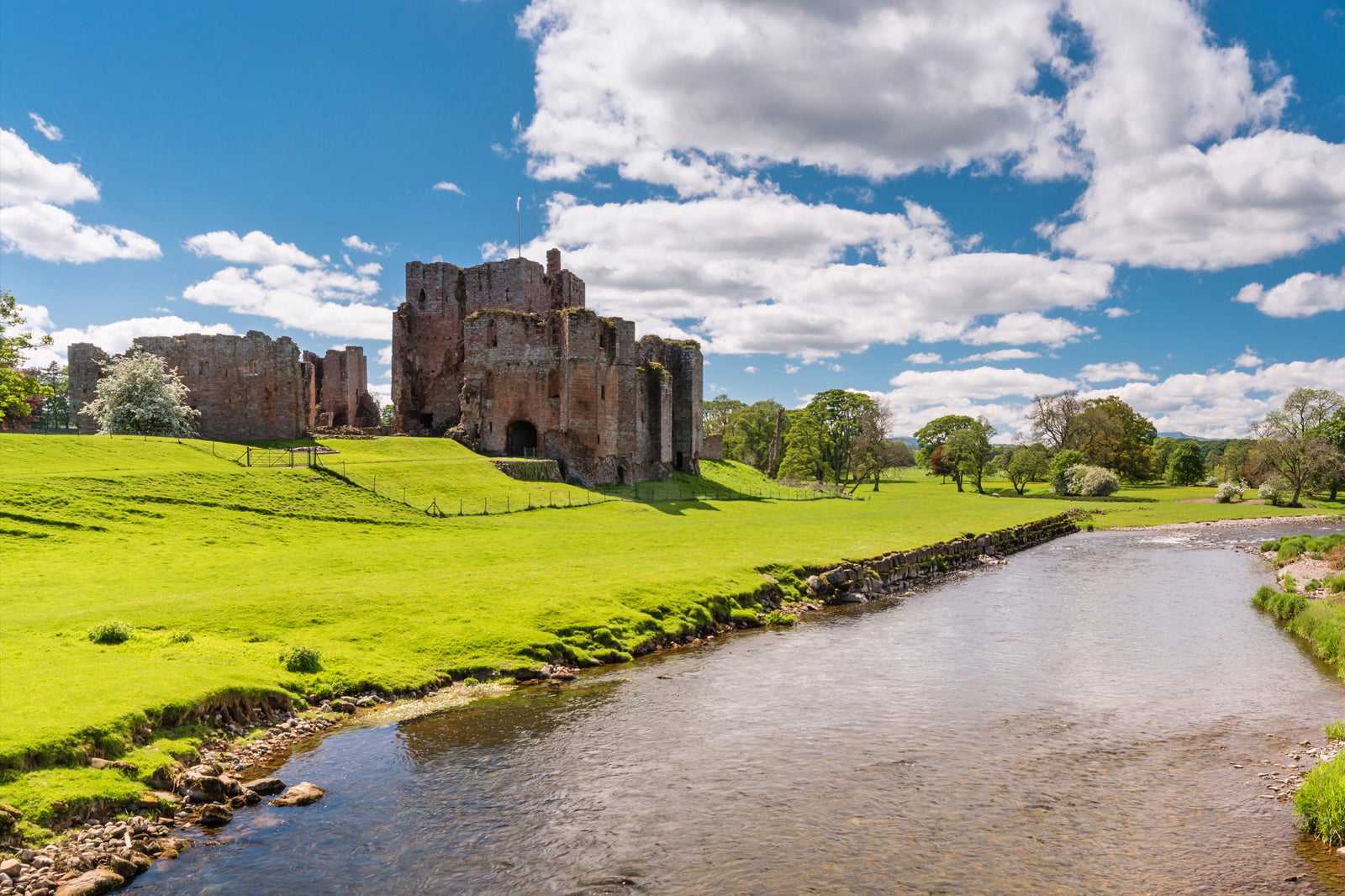 The motte and bailey castle ruins are those of a fortress built for Sir Hugh de Lowther that was the home of the Earls of Lonsdale through the 20th century.