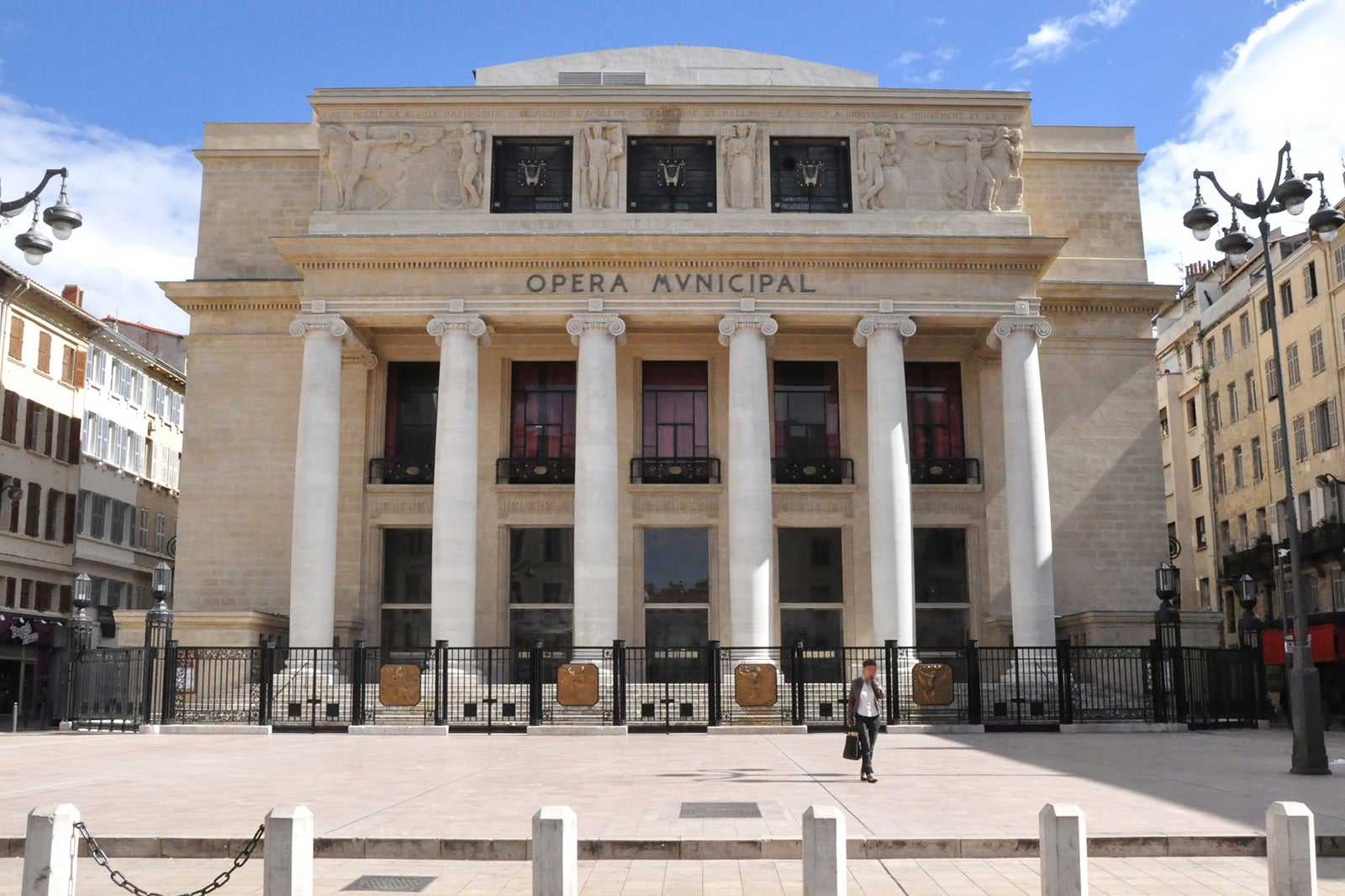 The original house was destroyed by fire in 1919, and the new Opéra Municipal de Marseille hall arose in 1924. The current building can seat up to 1,800 guests and features a classic urn shape design with art deco detailing. It preserves several features of the original, including the stone colonnade and original box office.