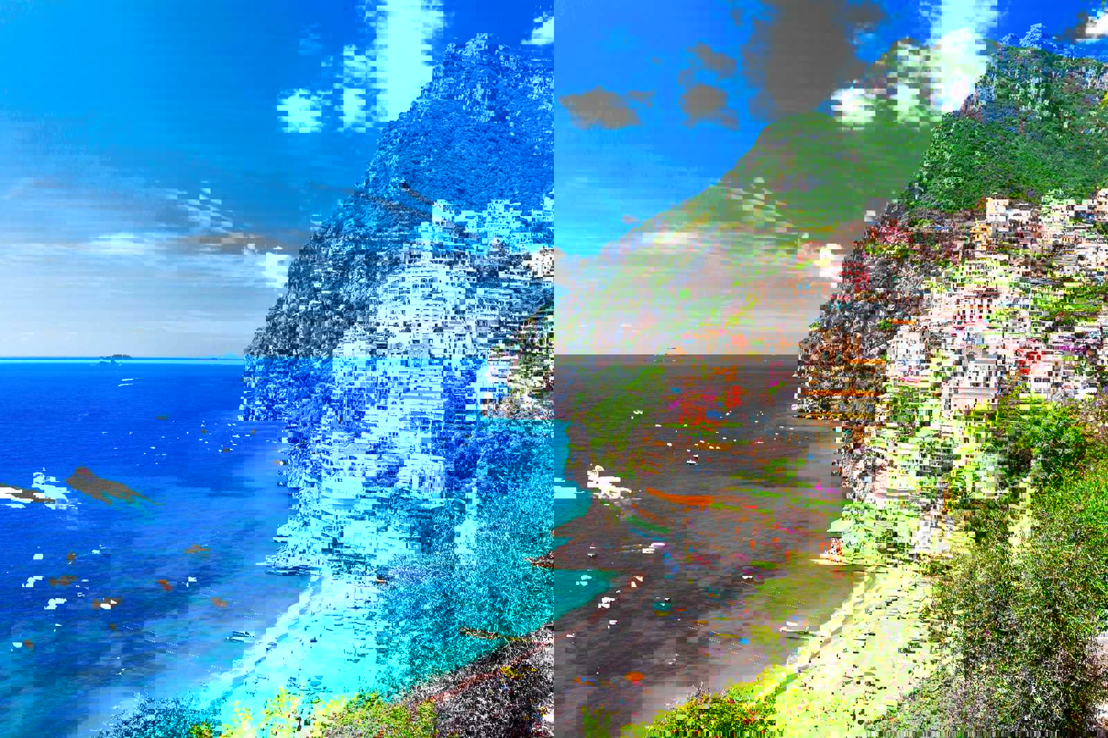 Positano is famous for being a scenic seaside paradise in Italy. You’ll be blown away with the colourful, cliffside villas overlooking the sunny Amalfi Coast. The sound of waves crashing against the pebbled shores is heaven for beach lovers. As you walk through its sloped streets, you'll encounter quaint cafés and boutique stores reverberating a cosmopolitan vibe.Unbelievable scenery awaits you...