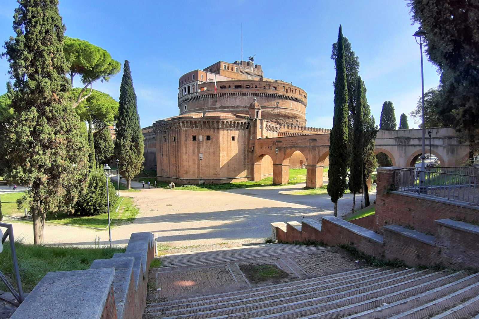 Once the highest structure in Rome, Hadrian’s Mausoleum is a high, cylindrical mausoleum built by the Roman emperor Hadrian for himself and his family. The building has been used as a castle, fortress and penitentiary by several popes and is now used as a national museum, prominently featuring the statue of Archangel Michael atop its highest point. Teatro Adriano is a movie theater in Prati and was also a theater for performing arts, known for being a venue of the 1965 Beatles European tour.