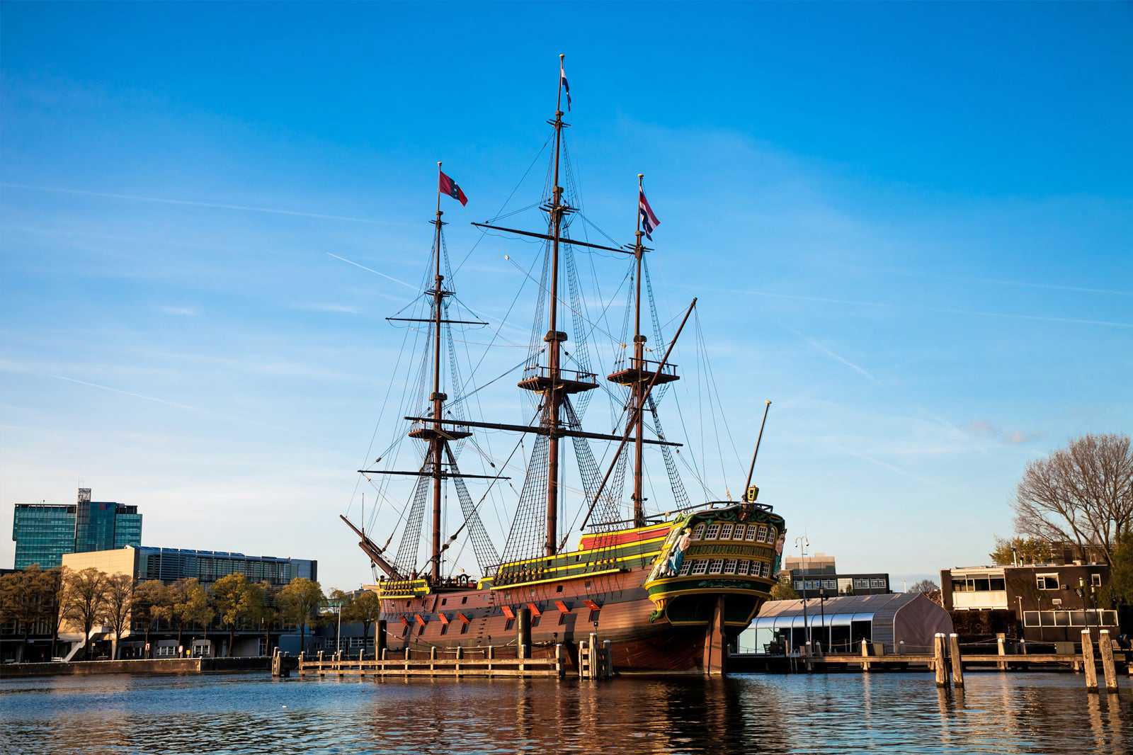 The National Maritime Museum, housed in the ‘s Lands Zeemagazijn building, was built in 1656 on an artificial island created by sinking 1,800 wooden piles into the harbour floor. Designed by Daniël Stalpaert, it was considered an architectural marvel with the purpose of preparing warships for the Dutch Republic.