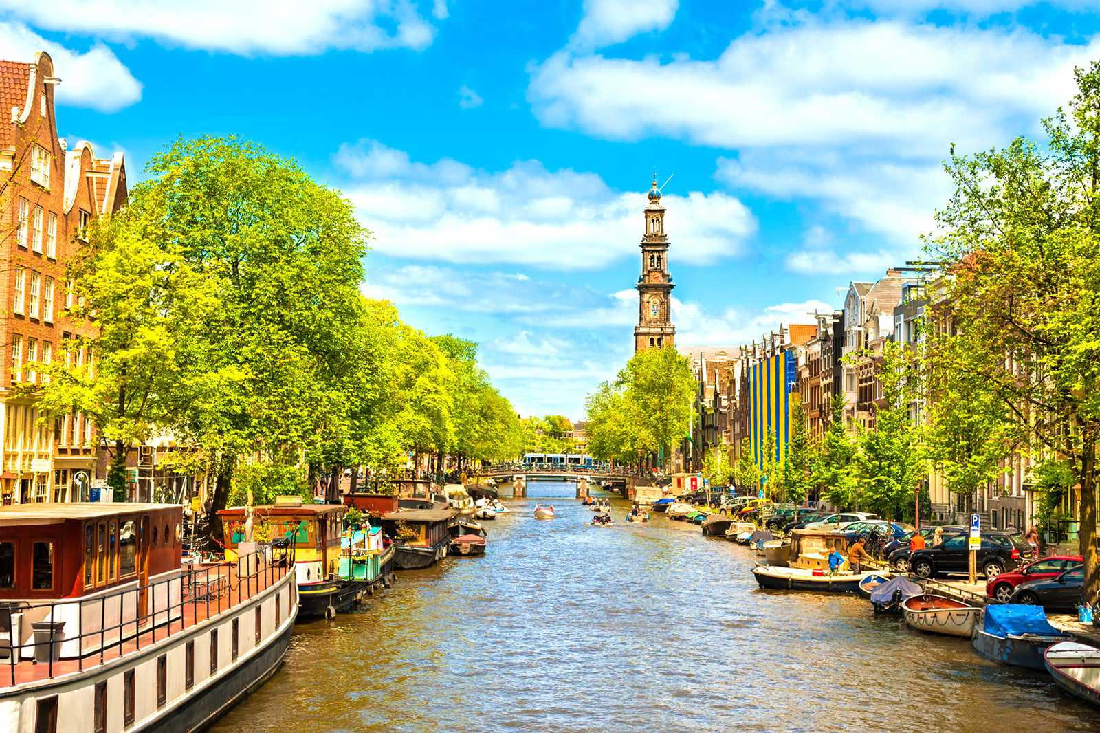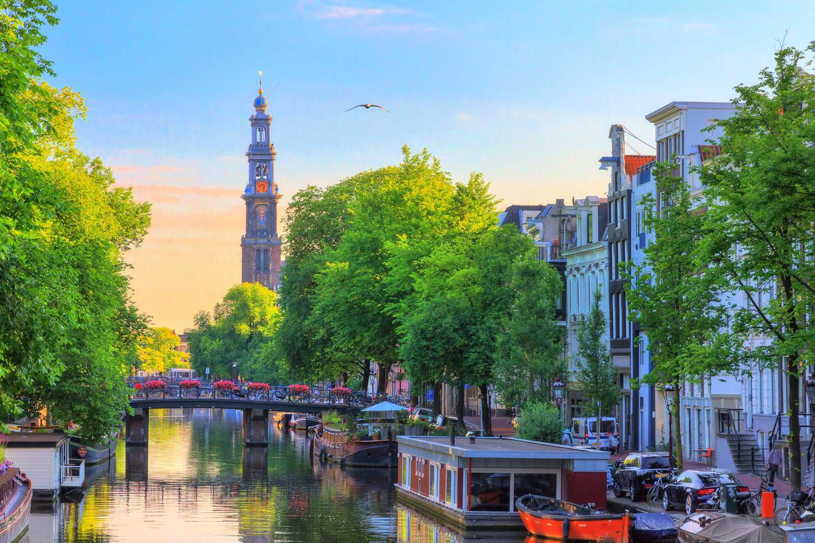 Westerkerk is a 17th-century Protestant church built along Amsterdam's Prinsengracht canal. Its tower, locally known as the Westertoren, ascends above the Grachtengordel canal system. At 85 meters tall, this is the highest church tower in all of Amsterdam.