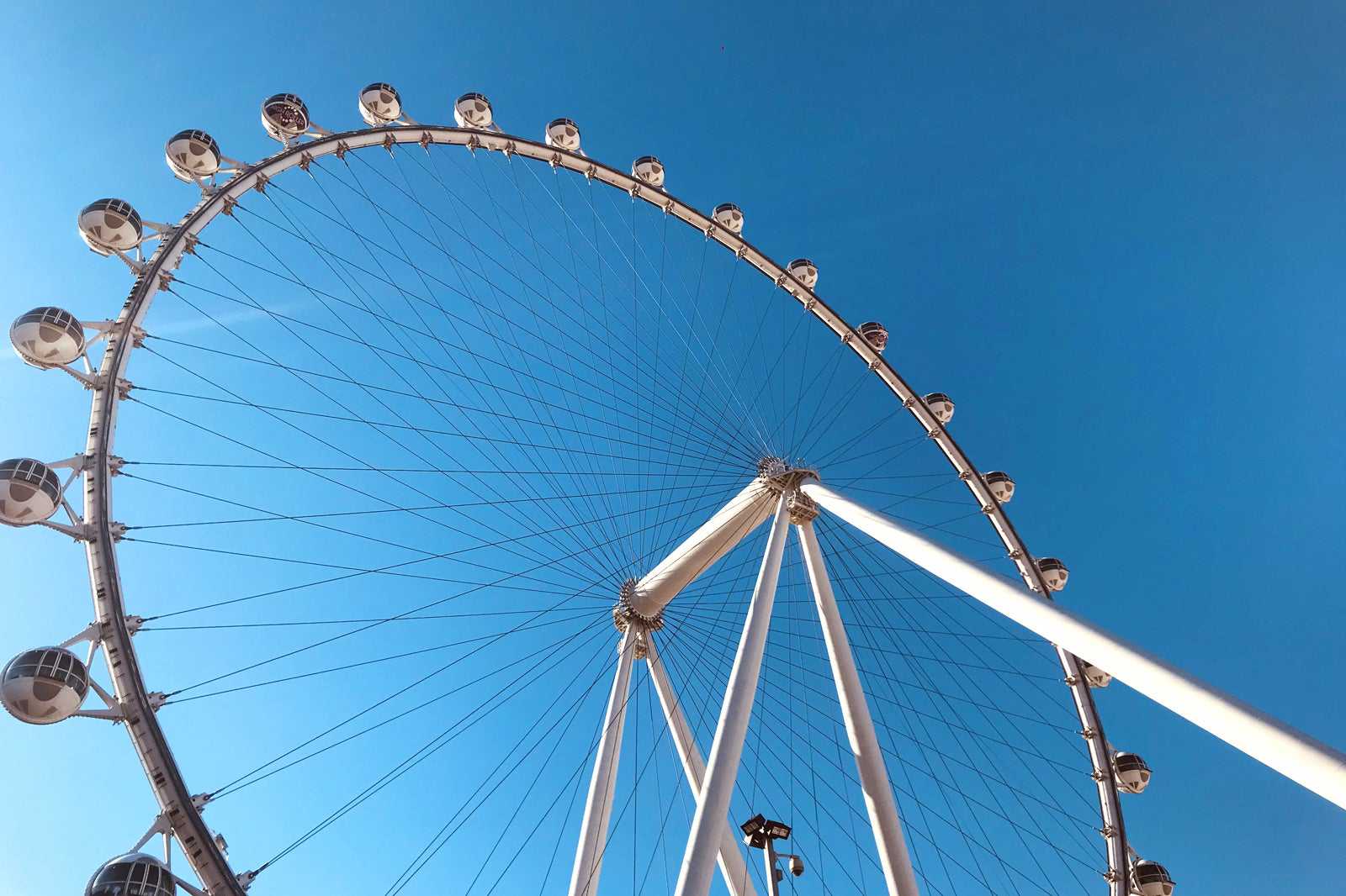 Since its completion in 2014, the High Roller is the tallest Ferris wheel in the world, almost 10 ft higher than its predecessor, the Singapore Flyer. The High Roller is 6.5 ft taller than the famous London Eye. Each of the 28 cabins is rotated individually, so the floors are perfectly horizontal throughout the entire ride. At the foot of the wheel, you can buy drinks at the High Roller's bar.