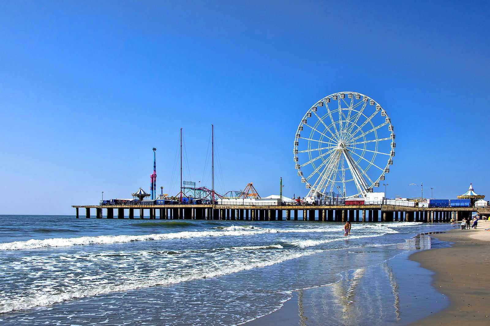 Over the years, Steel Pier has changed ownership several times and survived a destructive fire. It's been seen in films, referenced in music, and was the setting for a Broadway musical of the same name. Today, it mainly functions as an amusement park that operates many family-friendly rides and hosts events, including live music in its Music Hall Theatre and Marine Ballroom.