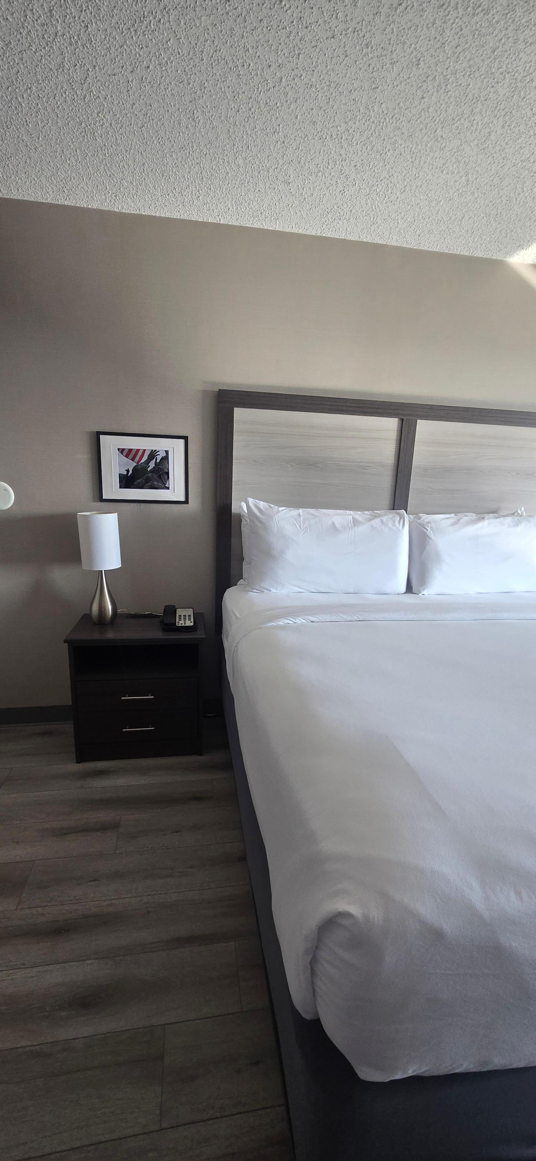 Upon checking in my room, I was taking by the amount of space the rooms have. Impeccable floors and very very very well kept bathrooms. Everything was exceptionally clean. Room had a microwave and mini fridge, iron and iron board. Updated USB and phone charges. All worked like it suppouse to.