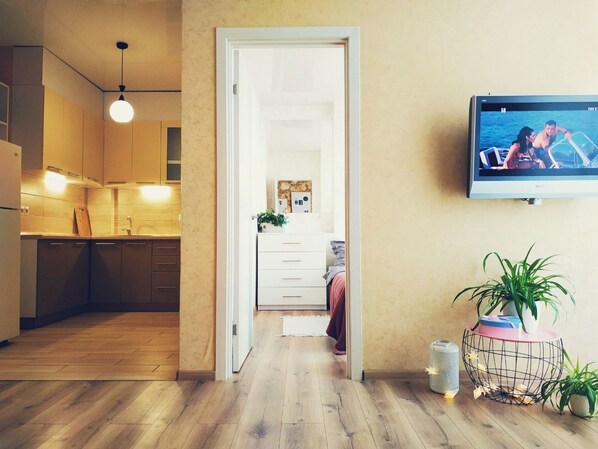 Este departamento es una excelente opción para tu estadía en Kiev. Los huéspedes podrán disfrutar de servicios gratuitos como wifi y estacionamiento. También dispone de cocina, televisión de pantalla plana y refrigerador.