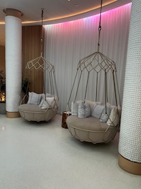 The spa offers massages, body scrubs, and facials. A hot tub, steam room, and 24-hour gym complete this wellness haven.