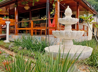 Esta propiedad de lujo cerca de una reserva natural presenta una decoración cuidada por artistas locales. El jardín y el paseo acuático combinan la belleza con el entorno natural.