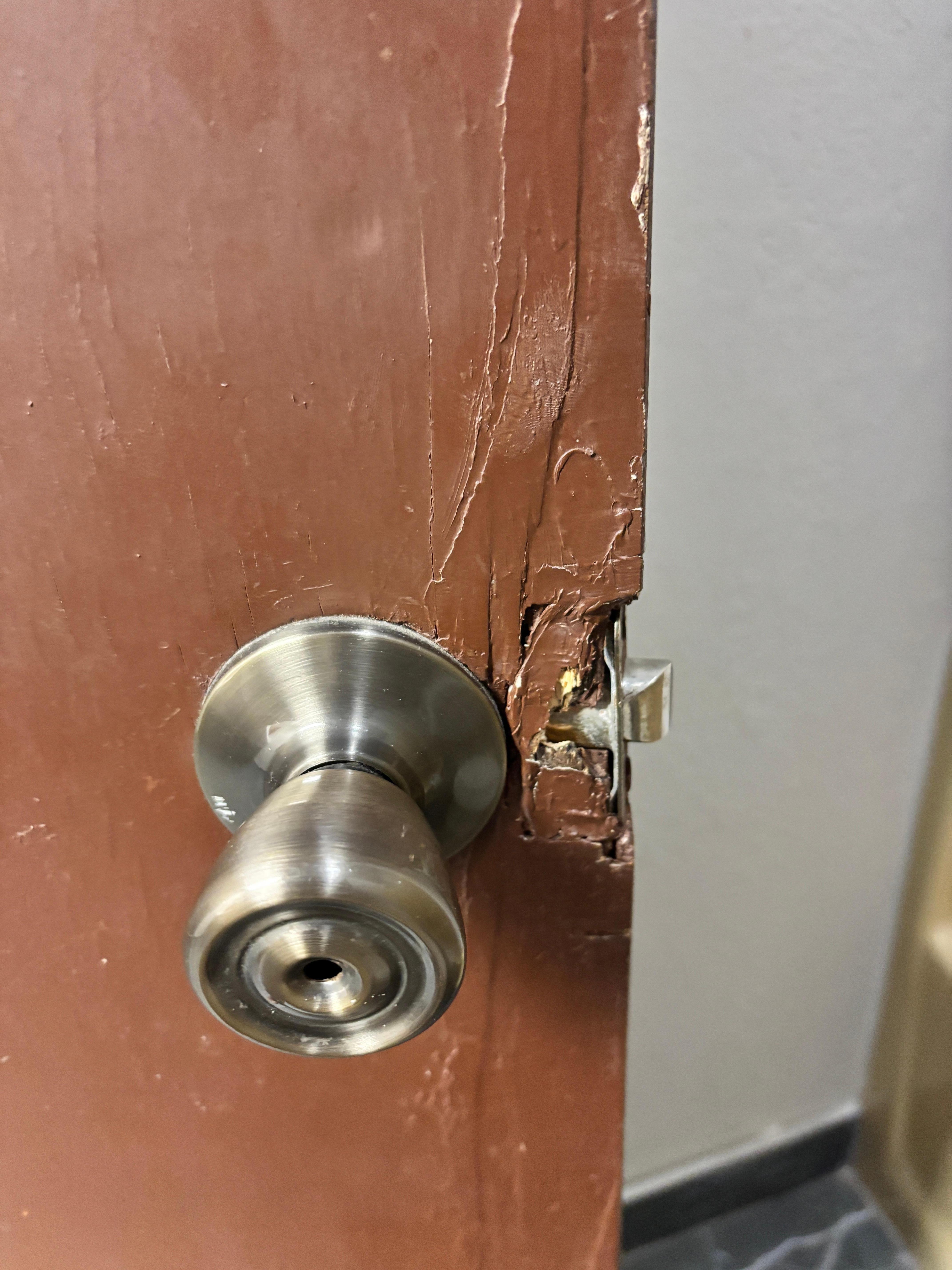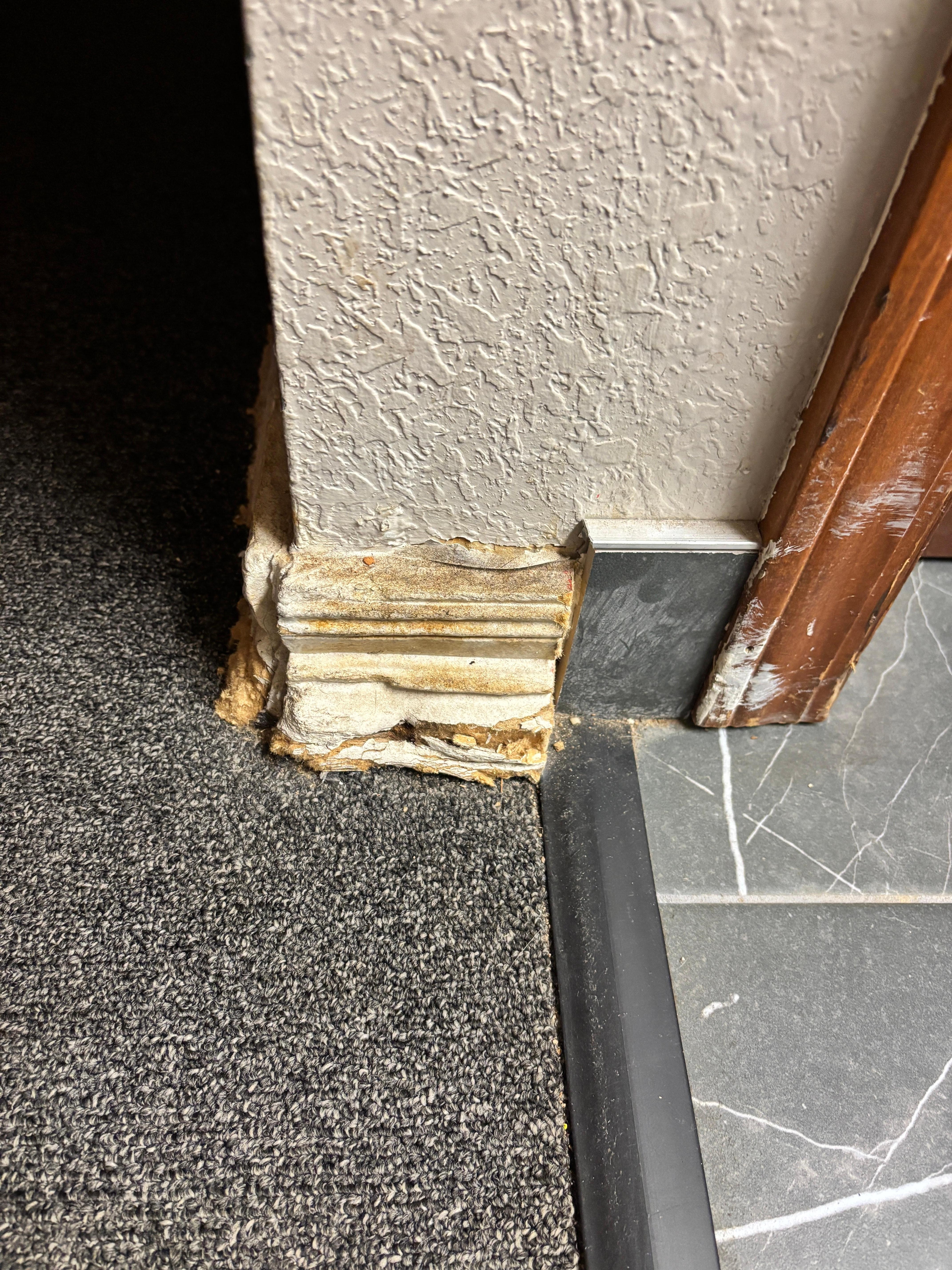 Maintenance clearly isn’t a priority either. The bathroom door frame was splintered and damaged, the molding was falling apart, and the toilet ran nonstop (can’t say I blame it) and wobbled when you sat down. The “new” bathroom flooring was dirty, and the carpet in the pet-friendly room smelled strongly of urine with visible stains.