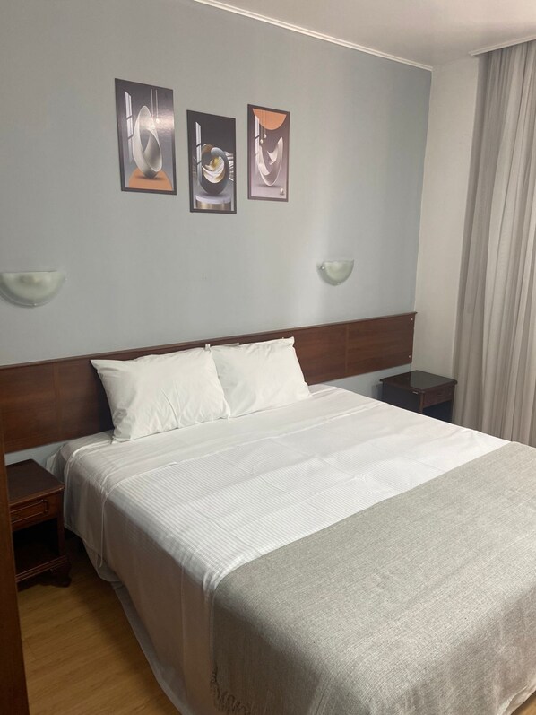 Hotel bem localizado, próximo ao centro e mercado público, quarto mais antigo mas tudo funciona bem, bom chuveiro e camas confortáveis O que deixou a desejar foi atendimento, era final de semana de bastante movimento apenas duas pessoas da recepção para Check In. Cheguei no hotel antes do horária (12:30) e havia me informado antes por telefone que precisaria alterar quarto para triplo, gerente me falou que sem problemas fazer alteração, na chegada não pude entrar porque não estava liberado pela gerente, apenas ela fazia alteração de quartos. A recepção não tinha autonomia para isso, o que facilitaria se soubessem. Tive que aguardar, matei tempo no centro, ao retornar uma fila enorme e atendimento demorado! Pela demanda de movimento deveria ter mais pessoas atendendo ou liberar check In um pouco antes pra quem ja estava ali evitando demora. Fiquei mais de 30min em função de atendimento, para realizar check In. O estacionamento fica em um parceiro, que fica umas três/quatro quadras do hotel, quando fui pegar carro fui informada do carimbo do hotel para ter desconto, tive que voltar ao hotel para receber tal carimbo, um desgaste desnecessário andando pra lá e pra lá, por falha simples de processo/comunicação : chegou hóspede, tem carro na garagem já carimba papel, evitando transtorno.