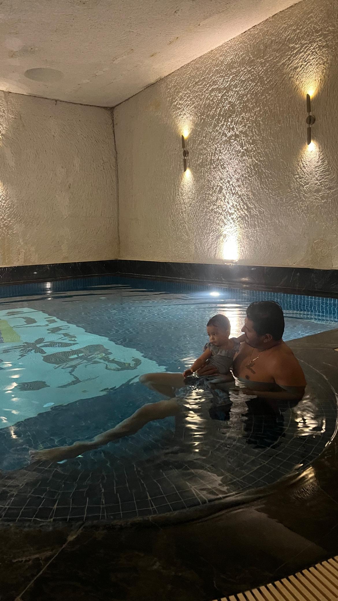 The have a wonderful underground pool and Turkish steam room but didn't use it, but due to a legal issue they have blocked off the entrance, so you have to go outside to the other entrance to use it,