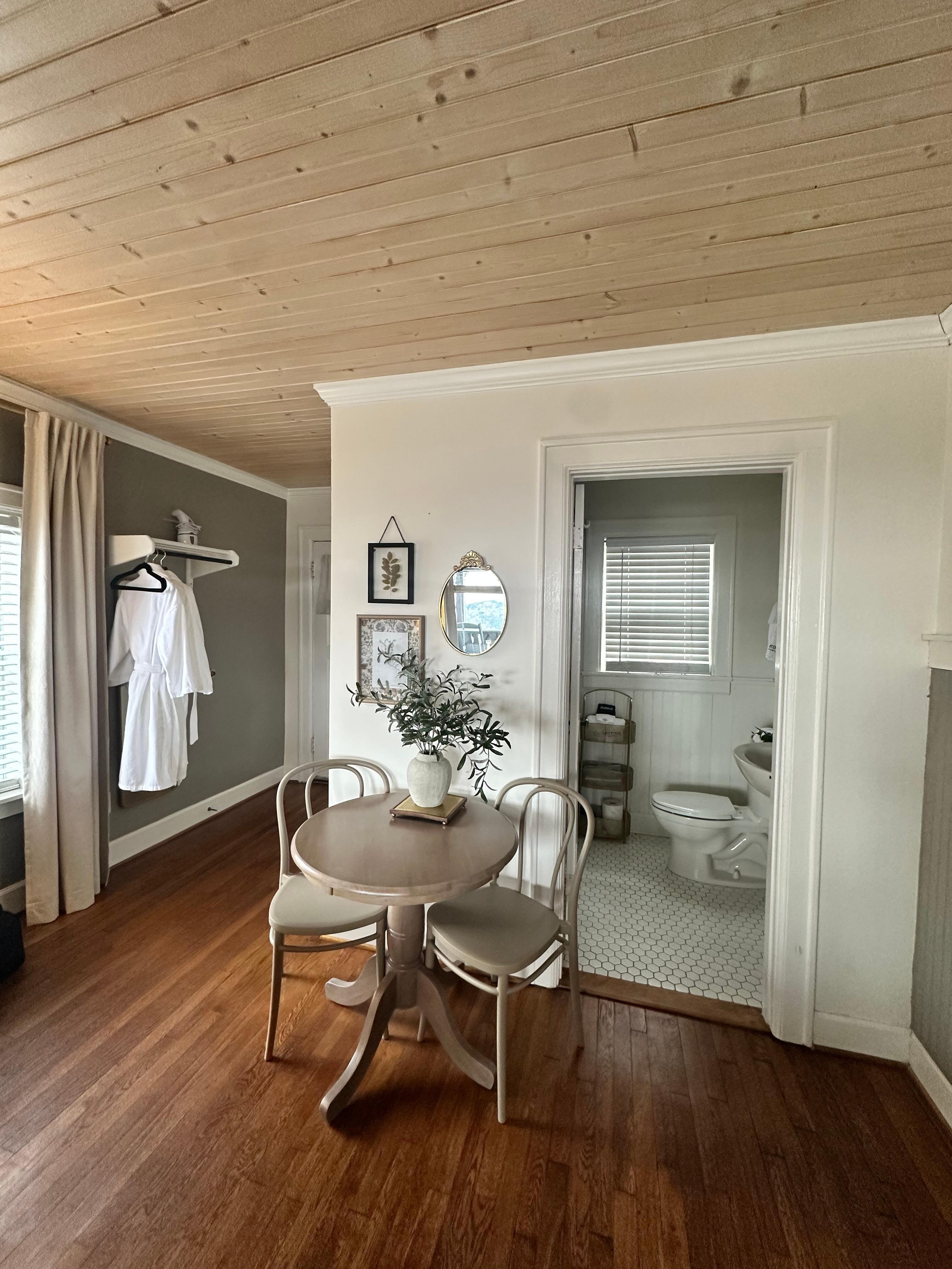 Our room was clean and comfortable, and the atmosphere overall was quiet and peaceful. We enjoyed the abundance of pillows on the bed, the fluffy white robes, and the in-room Keurig complete with coffee pods, sweeteners, and creamers. The Roku TV was really nice as well, as we could log in to our personal streaming services.