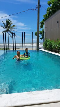 de apenas 01 ano e foi o maximo , as meninas da recepção muito gentis , a dona teresa maravilhosa , sempre cuidando para que tudo ficasse bem , o segurança super educado e simpático, o quarto maravilhoso uma vista incrível , com banheira vista para o MAR , cafe da manha excelente , para quem deseja descansar esse é o lugar , praia bem deserta em frente a pousada , a pousada tem a praia em frente para apenas os hospedes praticamente de tao vazia ( a praia ) , ah , nao poderia deixar de falar da piscina , umas das melhores parte a piscina enorme com borda infinita , amamos tudo , obrigada pousada acquadimare , breve voltaremos
