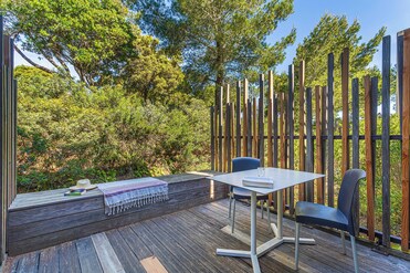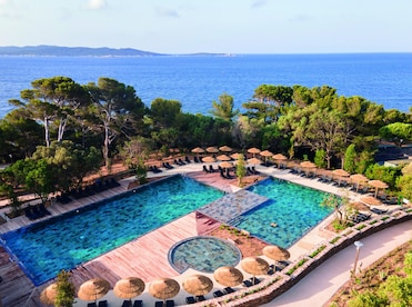 Magnifique emplacement pour ce club! Au milieu des pins, avec de belles promenades à partir du club,des criques aux eaux turquoises.