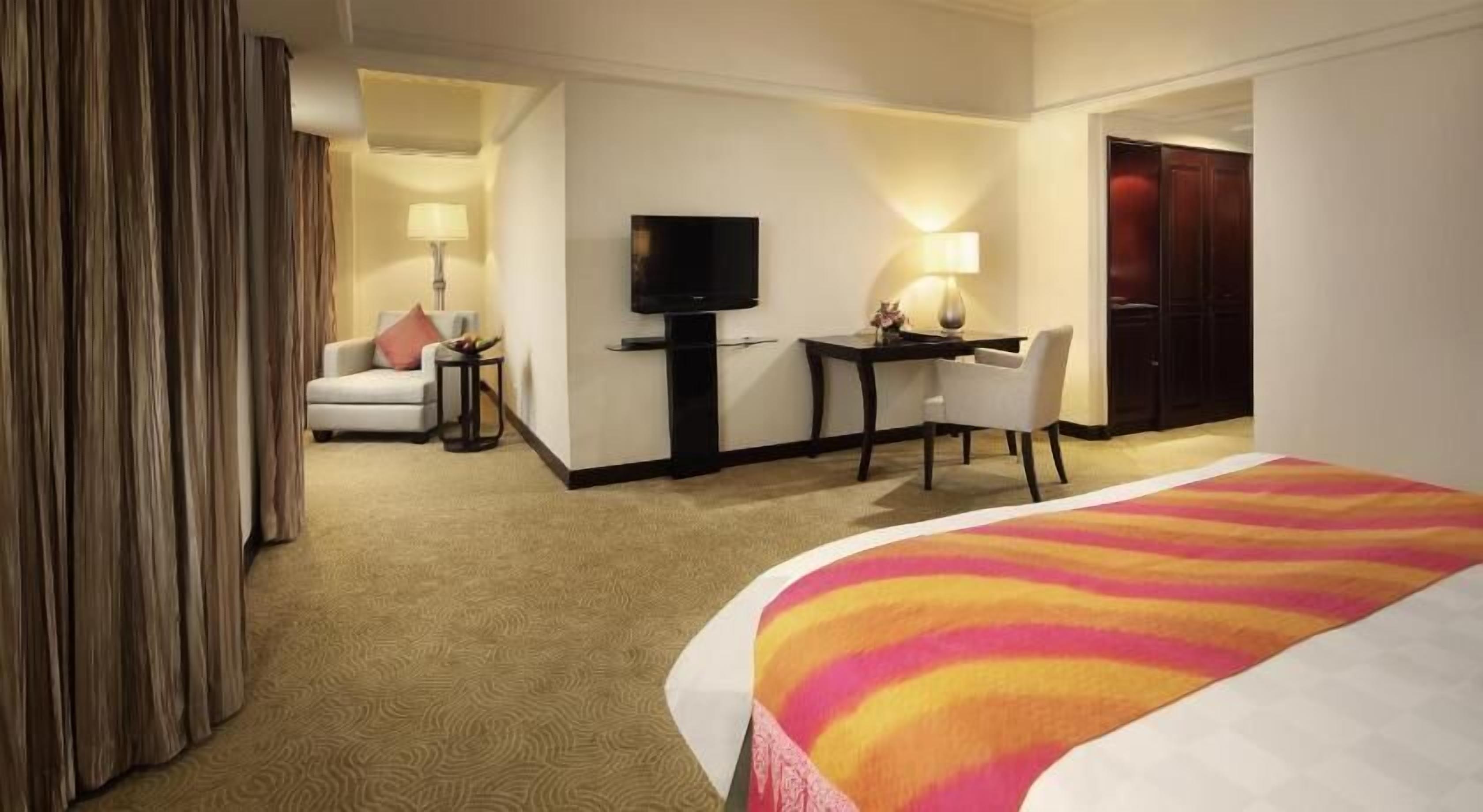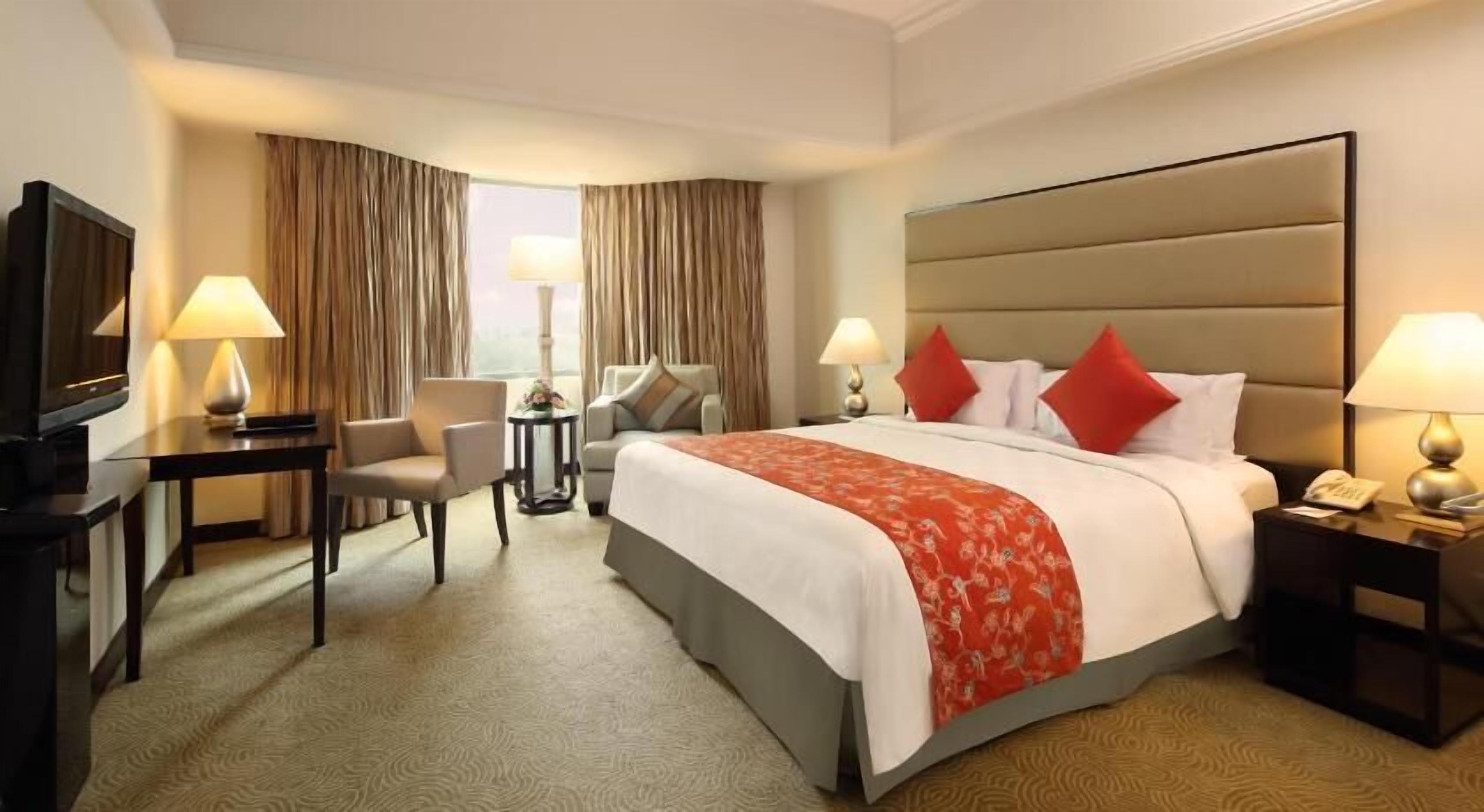 The hotel is a bit remote from the center of the city but is located in a very quiet area. I truly enjoyed my 6-day stay and felt always comfortable. Staff are all always very kind and friendly, and speak English well. Staff members at the reception willingly called a taxi for me (Across the street in front of the hotel, Blue Bird taxis are usually waiting) and kindly told me where convenience stores are (Actually, there are several small grocery stores and local restaurants near the hotel, but they are on the tiny roads and difficult to find. We need to walk for a while). Staff of the restaurant were also very kind. Breakfast and dishes are good. I purchased cake several times at the restaurant. The cake looks very beautiful and tastes good. I was allotted a room in the 7th floor, from which I enjoyed a marvelous view of the city of Pekanbaru and the swimming pool (In the weekend (holidays), a number of families stayed at the hotel and were enjoying the swimming pool). The room was spacious, but facilities of the room,especially the bathroom, was a bit old. I enjoyed a number of TV programs in the room . Also, the internet (wireless) is easy to use and very swift. To go to shopping malls, convenience stores, and restaurants at the center of the city, you need to take a taxi (but if you take a taxi, the center of the city is very close to the hotel).