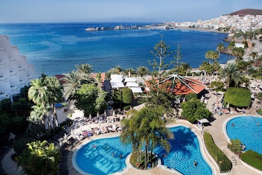 Hotel muy bonito situado al lado de una playa (de rocas) a 5 minutos de playas de arena( Los Cristianos y Las Americas). Zona tranquila con súpermercados y barecillos frente el hotel. Si quieres salir a tomar algo a 5 minutos por el paseo está todo lleno de locales varios. Habitaciones renovadas hace poco tiempo. Súper equipadas tv 40", nevera bar, terraza con hamacas, camas súper cómodas y baño amplio, nuevo y equipado. Tiene 2 piscinas juntas, un Spa, una mini bolera y varias mesas de Ping pong. Ordenadores Mac con internet(gratuito). Restaurante Buffet con amplia variedad de desayunos y cenas. Todos los días 2 tipos de carnes y pescados hechos al momento, aparte de la variedad del Buffet( ensaladas, fiambres, quesos, diferentes carnes y pescados etc...) bebida no incluidas. Aparte hay un restaurante previa reserva para cenar( de pago) Tambien Bar terraza para tomar helados, copas, refrescos, cafés etc. Hay también un bar en el interior donde se realizan los espectáculos diarios eso sí (enfocado a guiris)