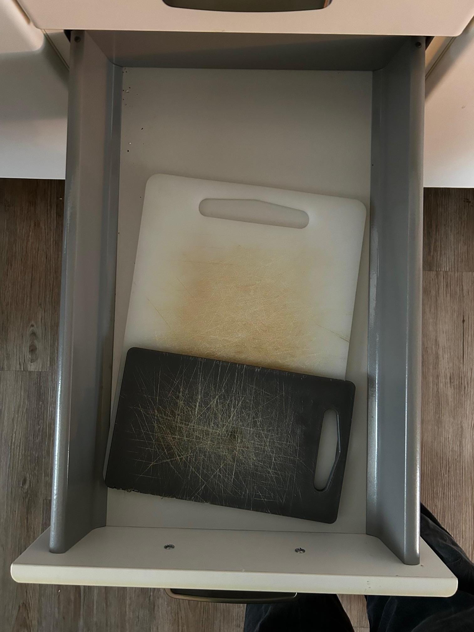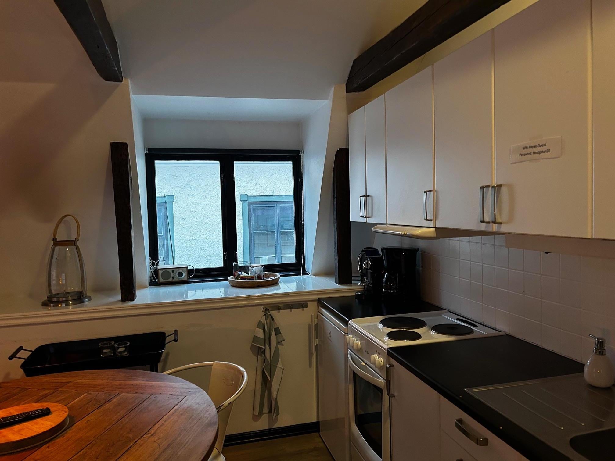 Köksdelen kändes inte helt funktionsdugligt då det saknades grytvantar tex, skärbrädorna var i plast från Ikea och var så använda att de var helt uppskurna och missfärgade (ville inte lägga min mat på den), 2 av 4 kaffemuggar var chippade.