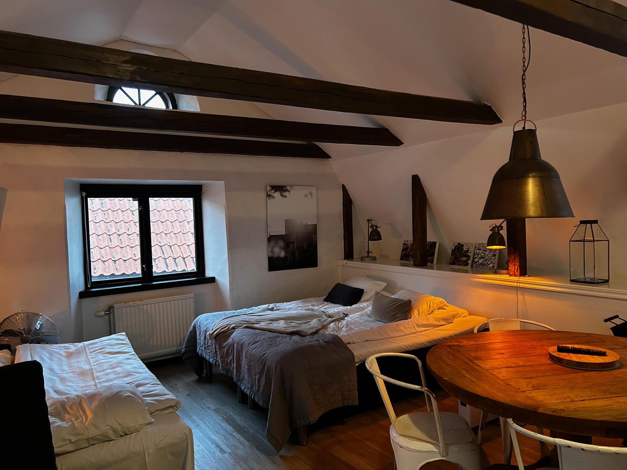 Hotellet är fantastiskt fint! Fint inrett, vårt rum hade högt i tak och gamla takbjälkar som viskade om husets ålder. När jag kom in i rummet kändes det som 5/5. Men desto längre vi var där desto mer saker märkte vi som drog ner betyget. Det handlade främst om att det var väldigt slarvigt städat, ingen hade städat grundligt på länge. Saker var trasiga, som tex bäddsoffan vilket gjorde det lite bökigt för oss att sova i den.