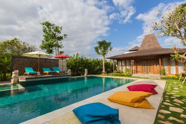Si te hospedas en esta villa, estarás a tan solo 15 minutos en auto de Templo Tanah Lot y de Eat Street. Los huéspedes pueden disfrutar de su día en la piscina al aire libre. Además, los servicios gratuitos incluyen wifi y estacionamiento. También dispone de una piscina infantil, una terraza y un jardín.